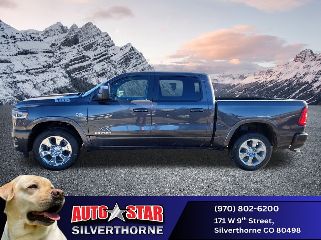 Check out all these great option's Bed Utility Group (Exterior 115V AC Outlet, MOPAR 4 Adjustable Cargo Tie-Down Hooks, MOPAR Spray in Bedliner, and Pick-Up Box Lighting), Big Horn Level 2 Equipment Group (115V Auxiliary Power Outlet, 115V Auxiliary Rear Power Outlet, 12" Touchscreen Display, 2nd Row in Floor Storage Bins, 3 Rear Seat Head Restraints, 4 Way Front Headrests, 400W Inverter, 4G LTE Wi-Fi Hot Spot, 9 Amplified Speakers with Subwoofer, Air Conditioning ATC with Dual Zone Control, Apple CarPlay, Auto Power-Folding Mirrors, Auto-Dimming Exterior Driver Mirror, Auto-Dimming Rear-View Mirror, Black Exterior Mirrors, Black Premium Power Mirrors, Body Color Fender Flares, Bucket Seats, Center Console Parts Module, Cluster 7.0" TFT Color Display, Configurable Drive Mode, Connected Travel and Traffic Services, Connectivity - US/Canada, Convex Wide-Angle Exterior Mirror Insert, Deluxe Cloth Bucket Seats, Disassociated Touchscreen Display, Exterior Mirrors Courtesy Lamps, Exterior Mirrors with Heating Element, Exterior Mirrors with Supplemental Signals, Front Seat Back Map Pockets, Full Length Floor Console, Global Telematics Box Module, Glove Box Lamp, Google Android Auto, GPS Antenna Input, GPS Navigation, HD Radio, Heated Front Seats, Heated Steering Wheel, Integrated Center Stack Radio, Integrated Voice Command with Bluetooth, Leather Wrapped Steering Wheel, LED Dome Lamp with on/Off Switch, LED Footwell Lighting, Manual Adjust 4-Way Front Passenger Seat, Media Hub with 2 Charge Only USBs, Overhead LED Lamps, Power 2-Way Driver Lumbar Adjust, Power Adjust 8-Way Driver Seat, Power Adjustable Pedals, Premium Overhead Console, Radio: Uconnect 5 Navigation with 12.0" Display, Rear 60/40 Folding Seat, Rear Center Armrest, Rear Power Sliding Window, Rear Window Defroster, Remote Tailgate Release, Security Alarm, SiriusXM Radio Service, SiriusXM with 360L, Steering Wheel Mounted Audio Controls, Sun Visors with Illuminated Vanity Mirrors, Universal Garage Door Opener, USB Host Flip, and Wheels: 20" x 9" Aluminum Chrome Clad), Quick Order Package 27Z Big Horn, Sport Appearance Package (Black Interior Accents, Body Color Door Handles, Body Color Front Bumper, Body Color Rear Bumper with Step Pads, Body Color Tailgate Handle, Grille Surround 1 Body Color Texture 1 Black, and RAM Grille Badge - Chrome), Towing Technology Group (Trailer Hitch Line-Up Assist), Trailer Tow Group (Accent Color Tailgate Handle, Black Trailer Tow Power Mirrors, Manual Folding Exterior Mirrors, Manuarl Telescoping Mirrors, Mirror Clearance/Running Lights, Power-Adjustable Convex Aux Mirrors, Trailer Brake Control, Trailer Reverse Steering Control, Trailer Tire Pressure Monitoring System, and Trailer Tow Mirrors), 33 Gallon Fuel Tank, 4-Wheel Disc Brakes, 48V Belt Starter Generator, 6 Speakers, ABS brakes, Air Conditioning, Alloy wheels, AM/FM radio, Anti-Spin Differential Rear Axle, Apple CarPlay/Android Auto, Auto High-beam Headlights, Brake assist, Bumpers: chrome, Cloth Bucket Seats, Compass, Delay-off headlights, Driver door bin, Dual front impact airbags, Dual front side impact airbags, Electronic Stability Control, Front anti-roll bar, Front Bucket Seats, Front Center Armrest w/Storage, Front fog lights, Front License Plate Bracket, Front reading lights, Front wheel independent suspension, Fully automatic headlights, Heated door mirrors, Illuminated entry, Low tire pressure warning, Manual Adjust 4-Way Driver Seat, MOPAR Front and Rear Rubber Floor Mats, MyFlexCare Service Plan, Occupant sensing airbag, Outside temperature display, Overhead airbag, Overhead console, Panic alarm, ParkView Rear Back-Up Camera, Passenger door bin, Passenger vanity mirror, Power door mirrors, Power steering, Power windows, Radio data system, Radio: Uconnect 5 Price includes: $3500 - 2026 National Retail Consumer Cash . Exp. 02/0