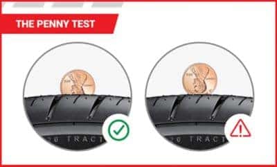 You want to make sure that your vehicle's tires are in good shape. Check your tire pressure and fill your tires up with air if needed to the appropriate pressure level. Also, make sure your tires have the correct amounts of tread on them. To check, insert a penny into your tire’s tread with top of Lincoln’s head facing inward towards the tire. If you are able to see Lincoln’s head it is time to replace your tires.