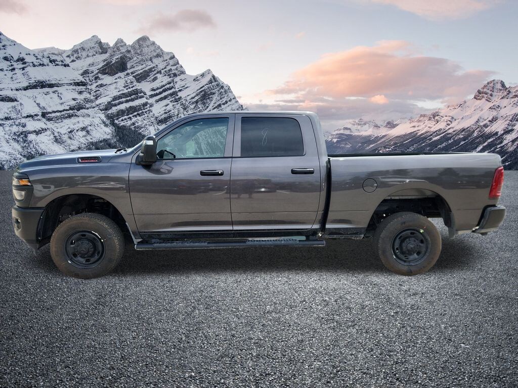 Granite Crystal Metallic Clearcoat 2025 Ram 2500 Tradesman 4WD 8-Speed Automatic 6.4L V8 4X4!!, 115V Auxiliary Front Power Outlet, 12" Touchscreen Display, 2 Way Rear Headrest Seat, 4 Way Front Headrests, 40/20/40 Split Bench Seat, 400W Inverter, 4G LTE Wi-Fi Hot Spot, Active Lane Management System, Adaptive Steering System, Air Conditioning ATC w/Dual Zone Control, Alexa Built-In, Anti-Spin Differential Rear Axle, Apple CarPlay, Auto High Beam Headlamp Control, Auto-Dimming Rear-View Mirror, Bed Utility Group (DISC), Black Exterior Mirrors, Carpet Floor Covering, Cloth 40/20/40 Bench Seat, Cluster 7.0" TFT Color Display, Connected Travel & Traffic Services, Connectivity - US/Canada, Disassociated Touchscreen Display, Drowsy Driver Detection, Emergency Vehicle Alert System (EVAS), Exterior 115V AC Outlet, Exterior Mirrors Courtesy Lamps, Exterior Mirrors w/Heating Element, Exterior Mirrors w/Supplemental Signals, Front & Rear Floor Mats, Front Armrest w/Cupholders, Global Telematics Box Module (TBM), Google Android Auto, GPS Antenna Input, GPS Navigation, HD Radio, Integrated Voice Command w/Bluetooth, LED Bed Lighting, Luxury Steering Wheel, Manual Adjust 4-Way Driver Seat, Manual Adjust 4-Way Front Passenger Seat, Manual Folding Exterior Mirrors, Manual Telescoping Mirrors, Mirror Running Lights, Mopar Black Tubular Side Steps, MOPAR Deployable Bed Step, MOPAR Spray In Bedliner, Off-Road Info Pages, ParkSense Front/Rear Park Assist System, Power Adjust Mirrors, Power Adjustable Convex Aux Mirrors, Power Heated Folding Telescope Mirrors, Quick Order Package 2UA Tradesman, Radio: Uconnect 5 Nav w/12.0" Display, Rain Sensitive Windshield Wipers, Rear Folding Seat, Rear Power Sliding Window, Remote USB Port - Charge Only, Safety Group, Selectable Tire Fill Alert, SiriusXM Radio Service, SiriusXM w/360L, Steering Wheel Mounted Audio Controls, Storage Tray, Tinted Acoustic Windshield Glass, Tradesman Level 1 Equipment Group, Traffic Sign Recognition, Trailer Tow Pages.