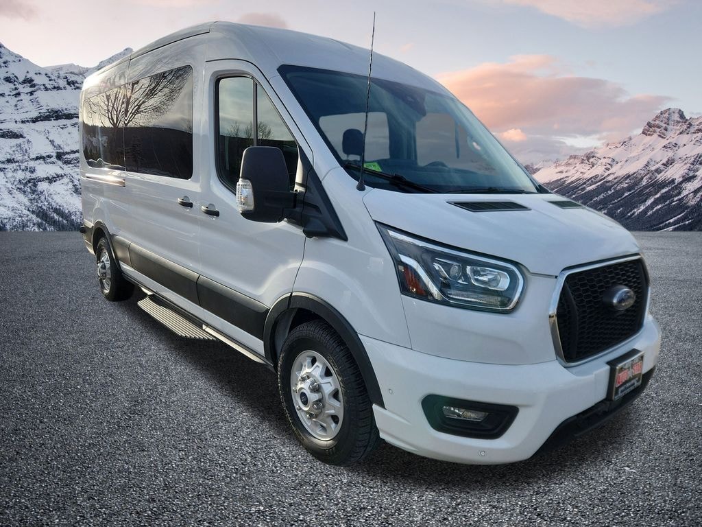 2023 Ford Transit-350 XLT Check out all these great option's Heavy-Duty Trailer Tow Package (Frame Mounted Hitch Receiver and Tow/Haul Mode w/Trailer Wiring Prov), 15-Passenger Seats, 3.73 Limited-Slip Axle Ratio, 360-Degree Camera w/Split View, 3rd row seats: split-bench, 4-Wheel Disc Brakes, 4th-Row Bench Seat, 50/50 Hinged Rear Door w/253-Degree Opening, 8 Speakers, ABS brakes, Air Conditioning, AM/FM radio, Auto High-beam Headlights, Auto Start-Stop Delete, Brake assist, Chrome High-Intensity Discharge (HID) Headlamps, Cloth Front Bucket Seats, Delay-off headlights, Driver door bin, Driver vanity mirror, Driver's Seat Mounted Armrest, Dual AGM Batteries (70 Amp-hr Each), Dual front impact airbags, Dual front side impact airbags, Dual-Note Horn, Ebony Cloth Bucket Seats, Electronic Air Temperature Control, Electronic Stability Control, Front anti-roll bar, Front Bucket Seats, Front Fog Lamps, Front License Plate Bracket, Front Overhead Shelf, Front reading lights, Front Sensing System, Front wheel independent suspension, Fully automatic headlights, Honeycomb Mesh Grille w/Chrome Surround, Illuminated entry, Intelligent Speed Assist (ISA), Large Center Console, Low tire pressure warning, Occupant sensing airbag, Overhead airbag, Panic alarm, Passenger door bin, Passenger seat mounted armrest, Passenger vanity mirror, Power door mirrors, Power steering, Power windows, Privacy Glass, Radio: AM/FM Stereo w/SYNC 4 & Nav, Radio: AM/FM Stereo w/SYNC 4/SiriusXM w/360L, Rain sensing wipers, Rear air conditioning, Rear window defroster, Remote keyless entry, Reverse Brake Assist, Reverse Sensing System, Running Boards, Side Sensing System, Steering wheel mounted audio controls, Tachometer, Telescoping steering wheel, Tilt steering wheel, Traction control, Traffic Sign Recognition (TSR), Trailer Brake Controller (TBC), Variably intermittent wipers, Vehicle Maintenance Monitor, Wheels: 16" Silver Steel w/Exposed Lug Nuts, and Wheels: 16" Sparkle Silver Alloy.