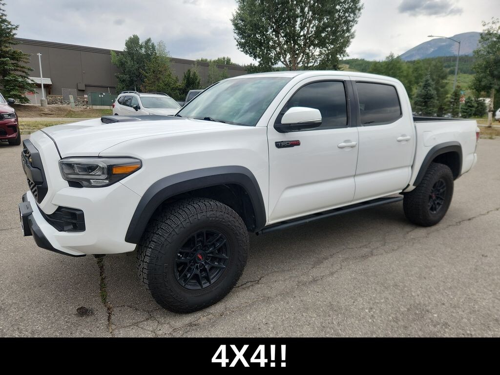 2020 Toyota Tacoma TRD Pro V6 Check out all these great option's TRD Pro Package (120V/400W Deck Mounted AC Power, Auto-Dimming Rearview Mirror w/HomeLink, Black Overfenders, Blind Spot Monitor w/Rear Cross Traffic Alert, Dual Zone Automatic Climate Control, Engine Immobilizer, Hood Graphics, Lane Change Assist, Mesh Front Grille, Power Sliding Rear Window w/Privacy Glass, Projector-Beam Headlights, Rear Parking Assist Sonar, Remote Keyless Entry System, Rigid Industries LED Fog Lights, TRD Floor Mats, TRD Pro Cat-Back Exhaust, TRD Pro Exterior Badging, TRD Pro Shift Knob, and TRD-Tuned Off-Road Suspension (TR)), 6 Speakers, ABS brakes, Air Conditioning, Alloy wheels, AM/FM radio: SiriusXM, Anti-whiplash front head restraints, Apple CarPlay/Android Auto, Auto High-beam Headlights, Auto-dimming Rear-View mirror, Automatic temperature control, Axle Ratio: 4.30, Brake assist, Bumpers: body-color, Driver door bin, Dual front impact airbags, Dual front side impact airbags, Electronic Stability Control, Emergency communication system: Safety Connect with 1-year trial, Front anti-roll bar, Front Bucket Seats, Front Center Armrest, Front dual zone A/C, Front fog lights, Front reading lights, Front wheel independent suspension, Fully automatic headlights, Garage door transmitter: HomeLink, Heated door mirrors, Heated front seats, Illuminated entry, Knee airbag, Leather Shift Knob, Low tire pressure warning, Navigation System, Occupant sensing airbag, Outside temperature display, Overhead airbag, Overhead console, Panic alarm, Passenger door bin, Power door mirrors, Power driver seat, Power moonroof, Power steering, Power windows, Radio: Premium w/AM/FM/Nav/App Suite, Rear Parking Sensors, Rear step bumper, Remote keyless entry, Security system, Speed control, Speed-sensing steering, Split folding rear seat, Steering wheel mounted audio controls, Tachometer, Telescoping steering wheel, Tilt steering wheel, Traction control, TRD Pro Leather Trim, Trip computer, Turn signal indicator mirrors, Variably intermittent wipers, and Wheels: 16" x 7J TRD Pro Black Alloy.